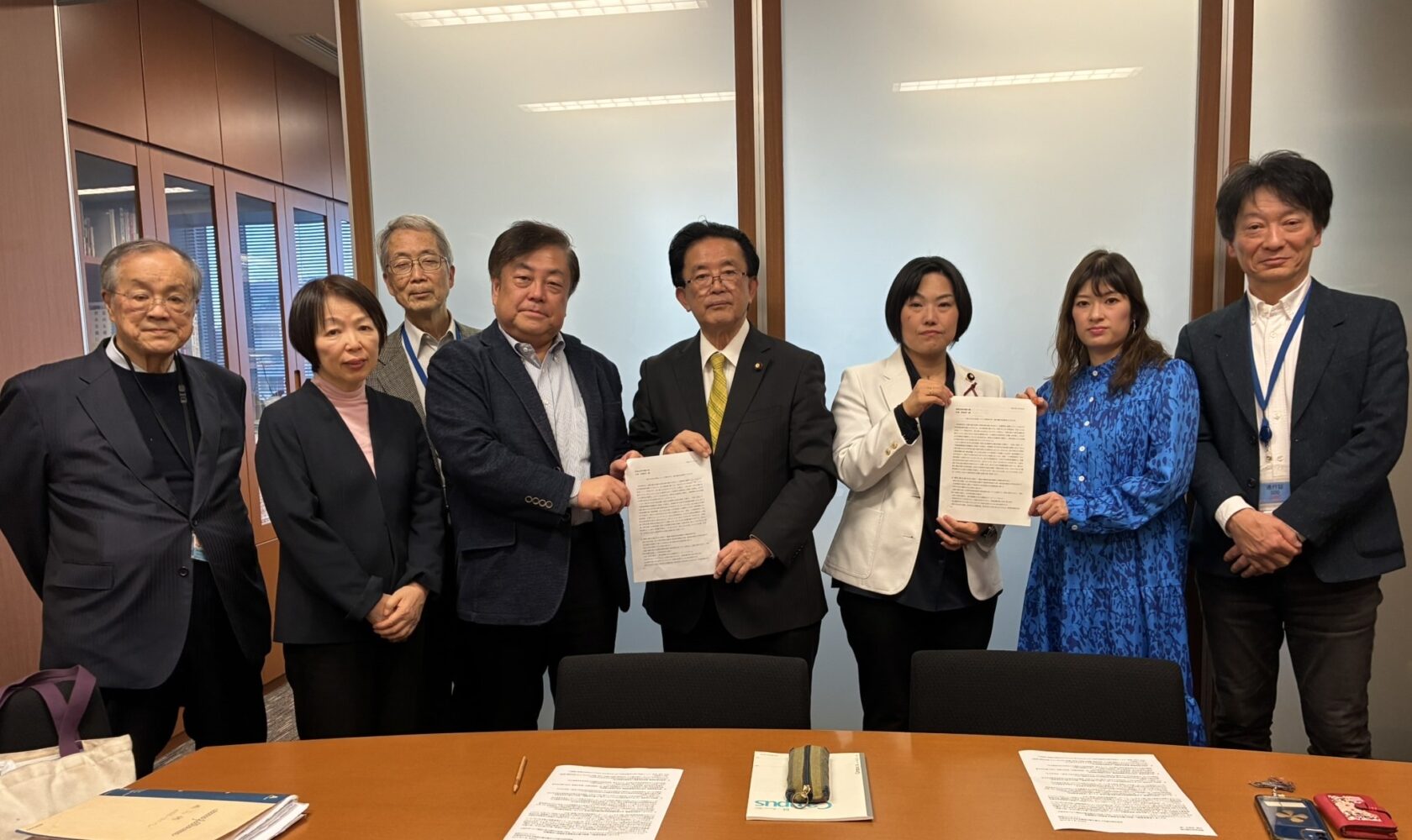 午前10時半から、社民党の福島みずほ党首、服部良一幹事長に要請書を手交し、福島党首は「全面的に賛同できる」と受け取ってくださいました。その場に新社会党の岡﨑ひろみ委員長も同席してくださり、手交することが出来ました。